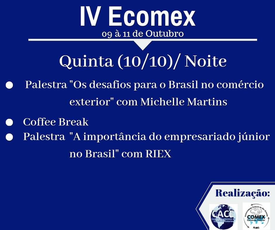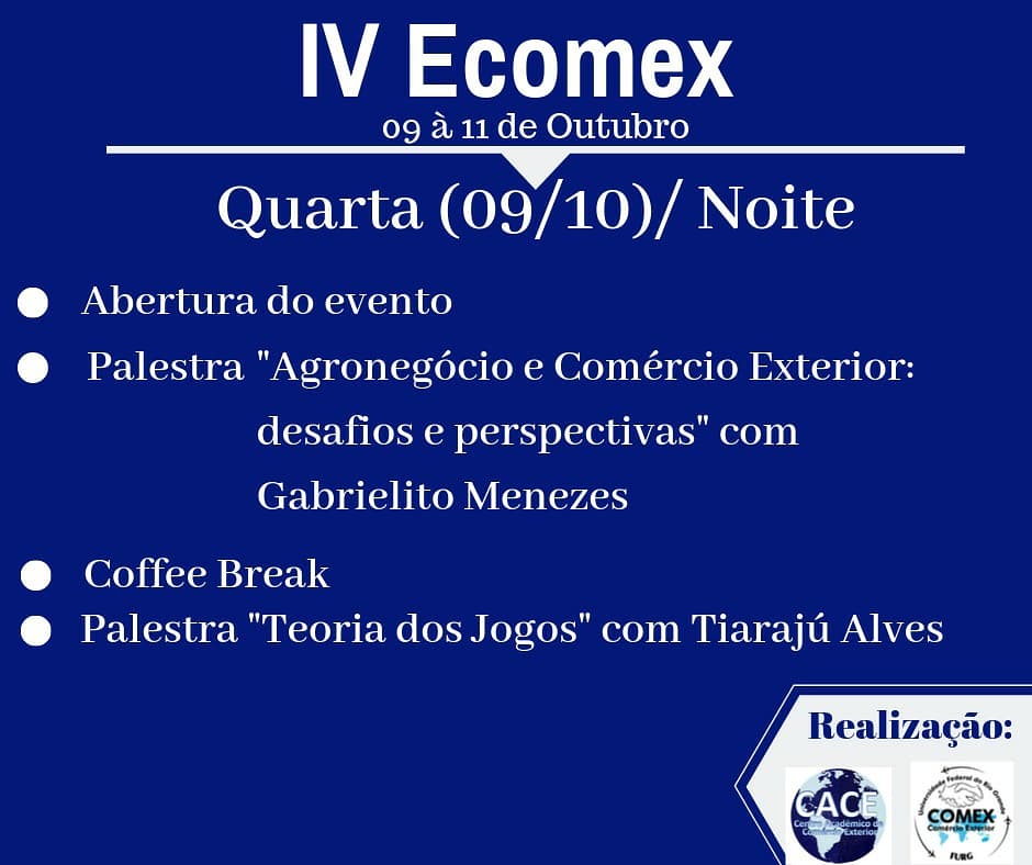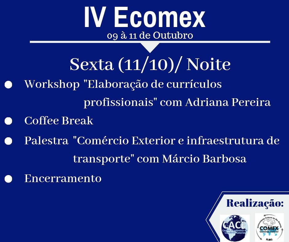 Programação disponível nas redes sociais do COMEX (@comexfurg no Instagram e facebook.com/comercioexteriorfurg).