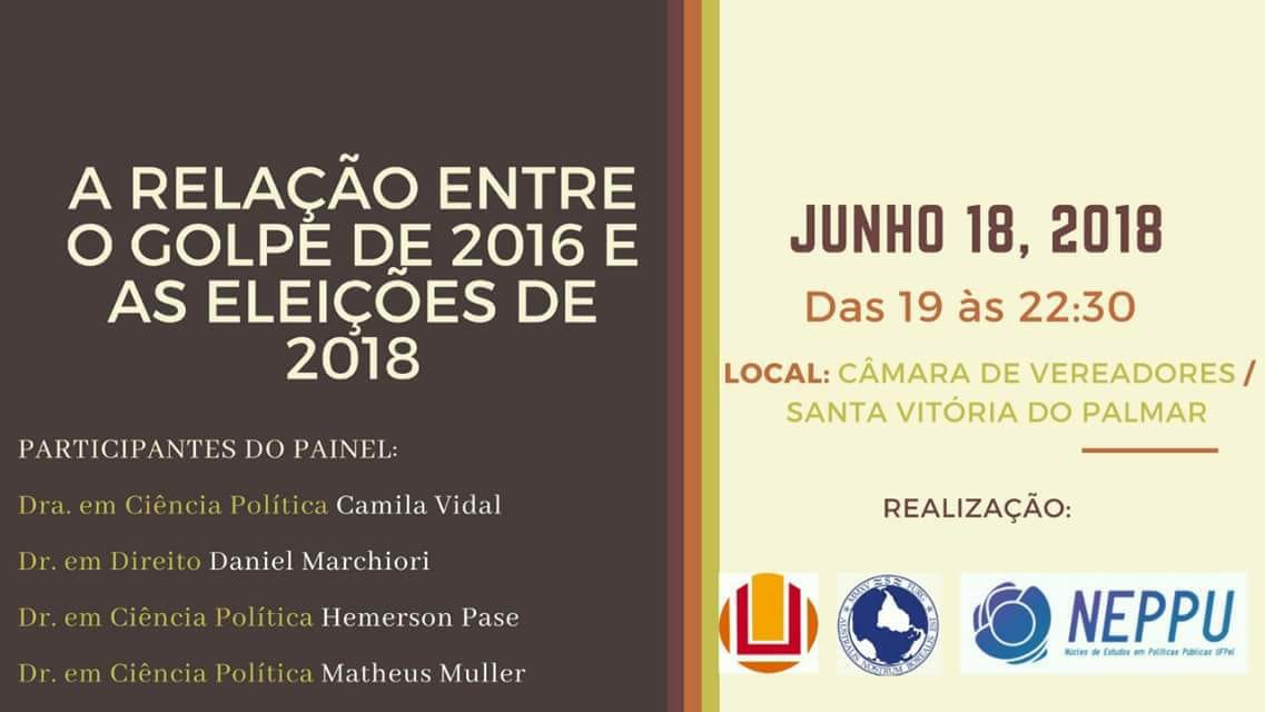 Trata-se de uma mesa-redonda que buscará refletir sobre a atual conjuntura política do país e as perspectivas eleitorais após o golpe parlamentar de 2016.